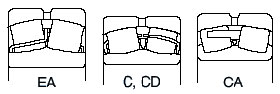 調(diào)心滾子軸承,如圖所示,有高負荷容量設(shè)計的EA型,C型,CD型,CA型。設(shè)計上, EA型,C型,CD型 為沖壓保持架, CA型為銅合金車制保持架。EA 型軸承具有高負荷容量,低轉(zhuǎn)矩的特長。